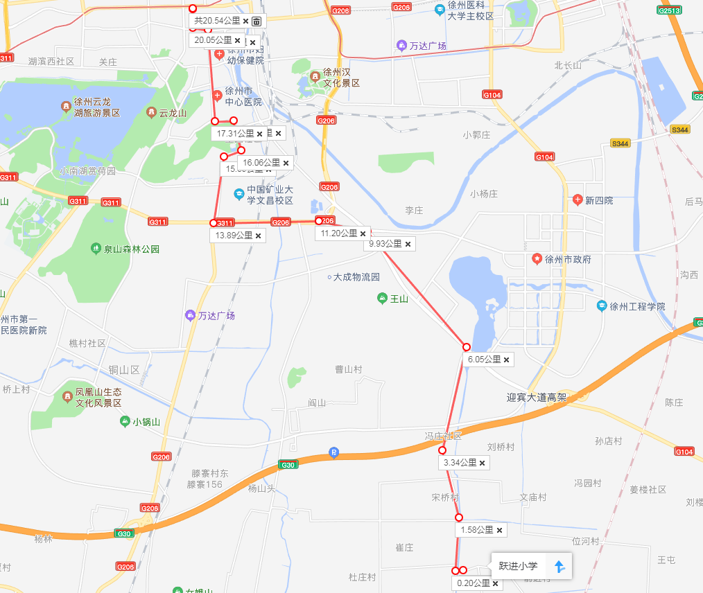 (2)停靠站點:棠張客運站、棠張、棠張批發(fā)市場、金銘紡織、馮莊醫(yī)院、溝楊莊、惠民公園、淮海國際汽車城、兩山口、欣欣路、御景灣小區(qū)、徐州工程學院、礦大南門、礦業(yè)大學、侯山窩、奎園西門、紀念塔、市四院、南京銀行、戲馬臺、中國人壽、中國人壽北、彭城飯店、徐州站。