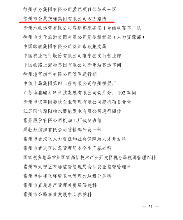 4月28日下午,江蘇省總工會(huì)發(fā)布關(guān)于表彰2022年省五一勞動(dòng)獎(jiǎng)和省工人先鋒號(hào)的決定,徐州交控公交集團(tuán)613路線獲得“江蘇省工人先鋒號(hào)”殊榮。
