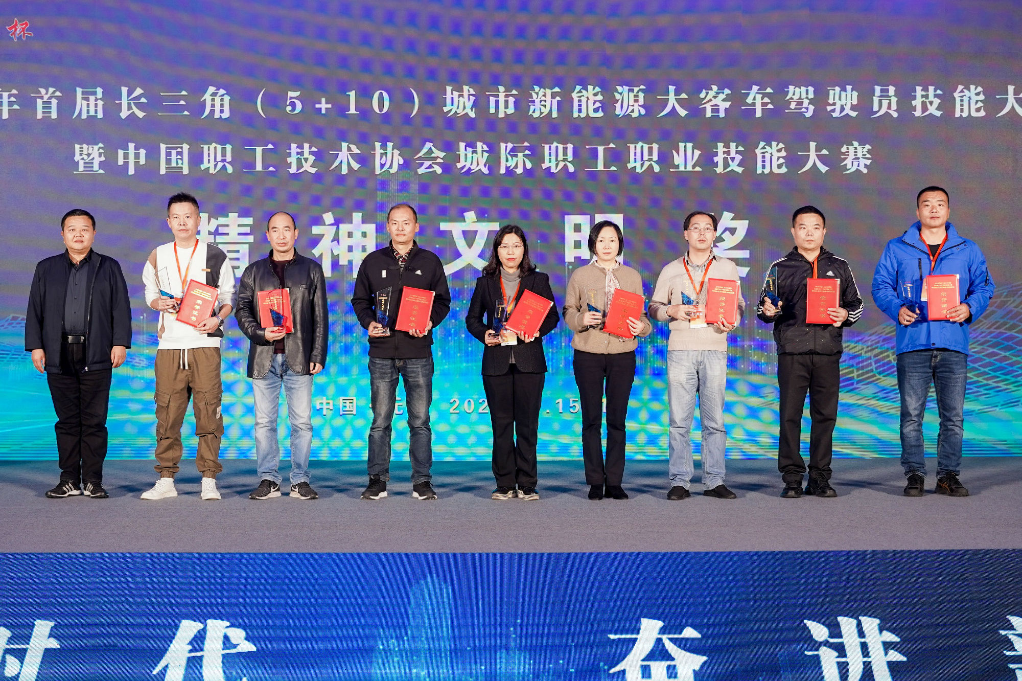 11月16日,2022年首屆長三角(5+10)城市新能源大客車駕駛員技能大賽在無錫完美收官。徐州公交集團黨委副書記、紀委書記、工會主席竇同銀帶領由集團駕駛員組成的徐州市代表隊參加此次競賽,并榮獲了團體精神文明獎,駕駛員段世望、秦浩分別獲三等獎的好成績。