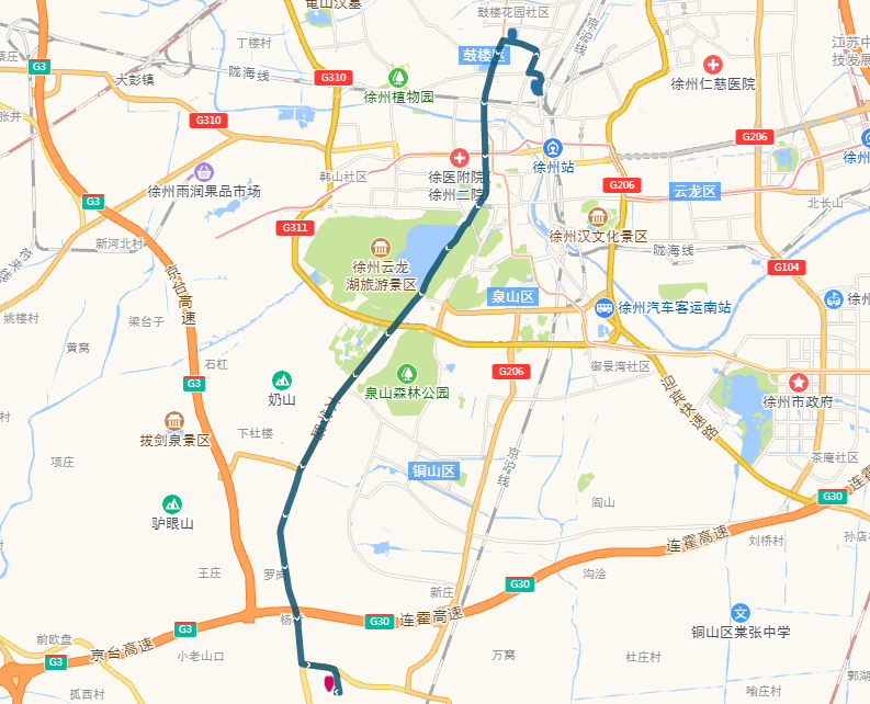 (2)沿途停靠站點(公交站臺):新建北村、電力醫(yī)院、祥和小區(qū)、馬場村(中山北路)、鼓樓區(qū)政府、后勤學院、礦大南湖校區(qū)、國基城邦、臺上草莓小鎮(zhèn)。