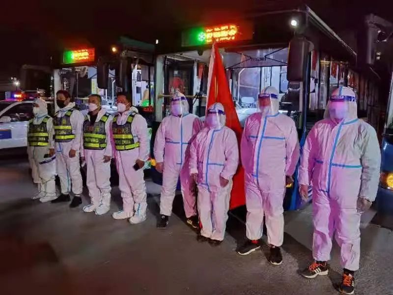 4月3日凌晨00:20,新區(qū)公司突擊隊接到保障任務(wù),協(xié)助銅山區(qū)做好劉集服務(wù)區(qū)隔離人員轉(zhuǎn)運(yùn)工作,突擊隊員周志剛、匡保衛(wèi)臨危受命,戴口罩、戴帽子,穿防護(hù)服、護(hù)目鏡、戴手套、封領(lǐng)口……全副武裝走進(jìn)了公交車廂,兩個人兩臺車負(fù)責(zé)將29名隔離人員轉(zhuǎn)運(yùn)至大許派出所,返回后進(jìn)行了全面消殺停運(yùn)?!奥牭礁綦x二字心里有擔(dān)憂,但沒覺得怕,我們公交人雖不是抗疫戰(zhàn)線主角,但我們也從來不會缺席”周志剛坦然說道。