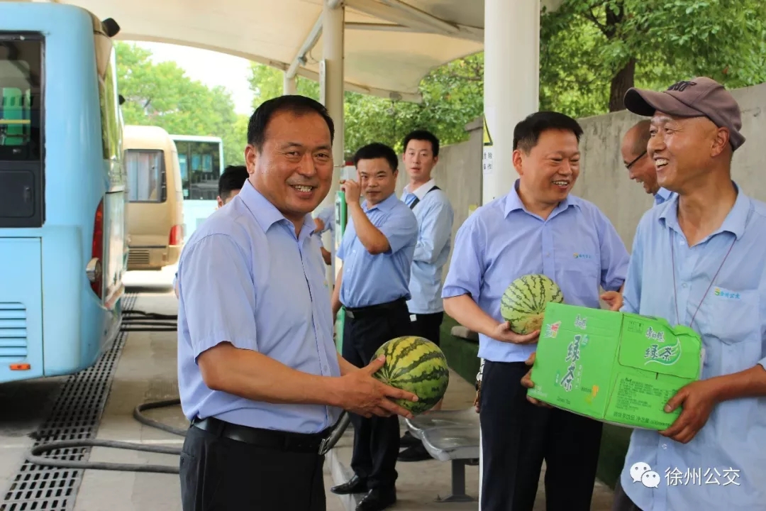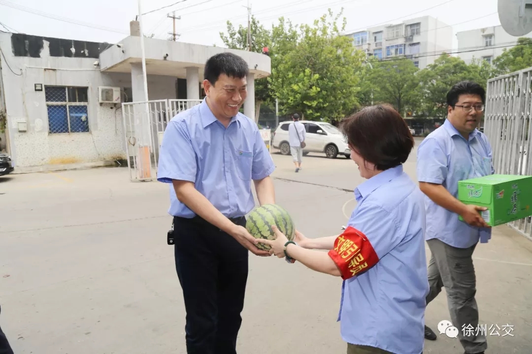 為切實(shí)關(guān)心關(guān)愛(ài)堅(jiān)守一線的公交員工,徐州公交認(rèn)真開(kāi)展“夏日送清涼”活動(dòng),7月22日上午11:45,領(lǐng)導(dǎo)班子分4組深入站臺(tái)、調(diào)度室、修理車(chē)間等17處基層一線,為奮戰(zhàn)一線、堅(jiān)守崗位的員工送上涼茶、西瓜等清涼物資,向冒著高溫酷暑、辛勤工作的一線員工表示敬意和慰問(wèn),叮囑他們落實(shí)好各項(xiàng)防暑降溫措施,確保在高溫環(huán)境下市民能正常清涼出行。