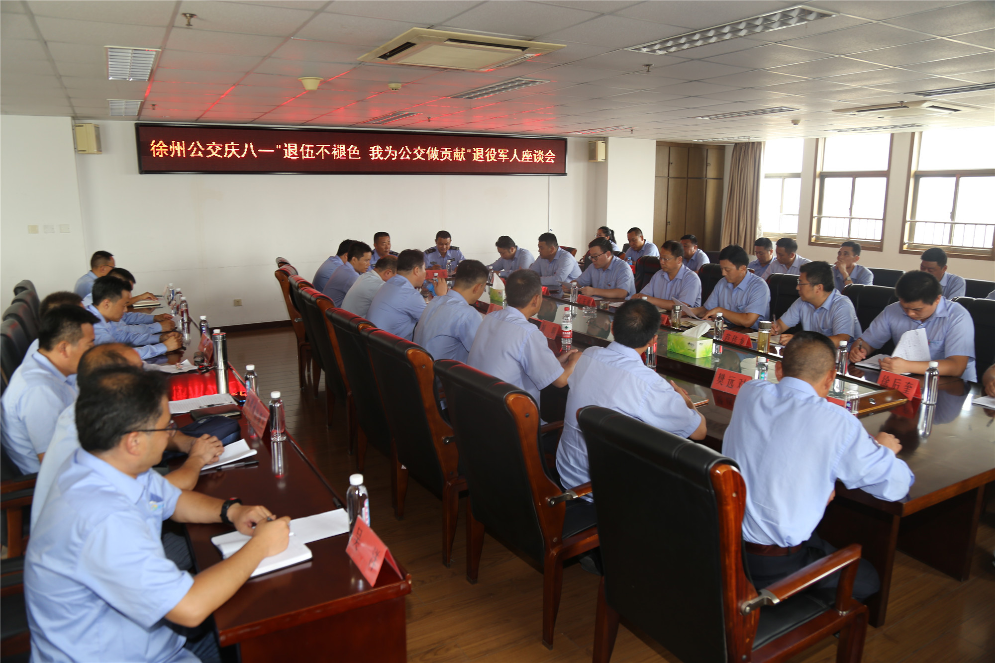 為紀念中國人民解放軍建軍92周年,貫徹落實習(xí)近平新時代中國特色社會主義思想中關(guān)于“強軍、建軍、擁軍”的精神,激勵公交廣大退役軍人在企業(yè)改革發(fā)展進程中,繼續(xù)保持和發(fā)揚“不怕困難、不怕犧牲、勇于拼搏、勇于爭先”的光榮傳統(tǒng)和頑強作風(fēng),7月30日,公司在11樓會議室舉辦了慶八·一“退伍不褪色·我為公交做貢獻”退役軍人座談會,并為每位退役軍人發(fā)放了夏涼被等八一紀念品。公司副總經(jīng)理丁玉華,公司黨委副書記、紀委書記、工會主席竇同銀參加了座談會并講話。