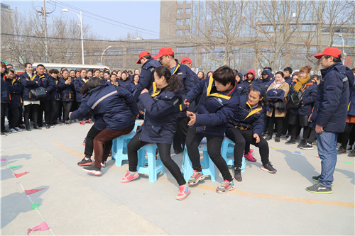 “參賽隊員各就各位!裁判員準備計時!”運動會主持人一聲令下,首先開始比拼的項目是需要隊員齊心協(xié)力,發(fā)揚合作精神的“三人四足接力賽”,三人一組紅繩綁腿齊步走,每隊12名參賽隊員,比的是速度,更是勁兒往一處使的同心合力?!凹佑停〖佑桶?!”“一二!一二!”比賽場上運動員的號子聲和場外女工們的加油聲、歡笑聲交織一起,此起彼伏。