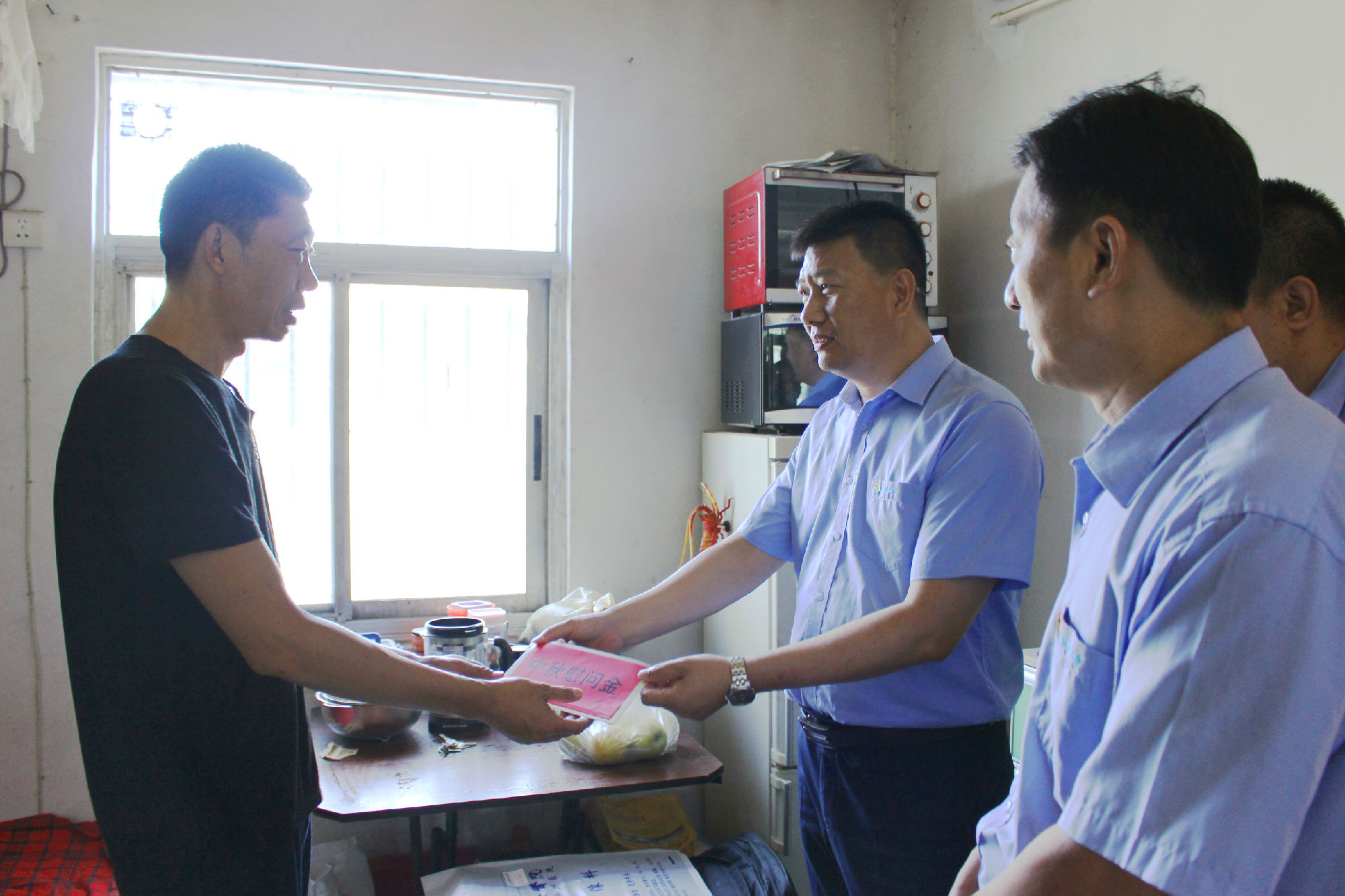 公司領(lǐng)導(dǎo)慰問(wèn)組分赴困難職工家中、醫(yī)院,與他們親切交談,了解他們的工作、生活及家中成員狀況和困難情況,同時(shí)為他們送去了中秋節(jié)慰問(wèn)金、助學(xué)金及中秋祝福。