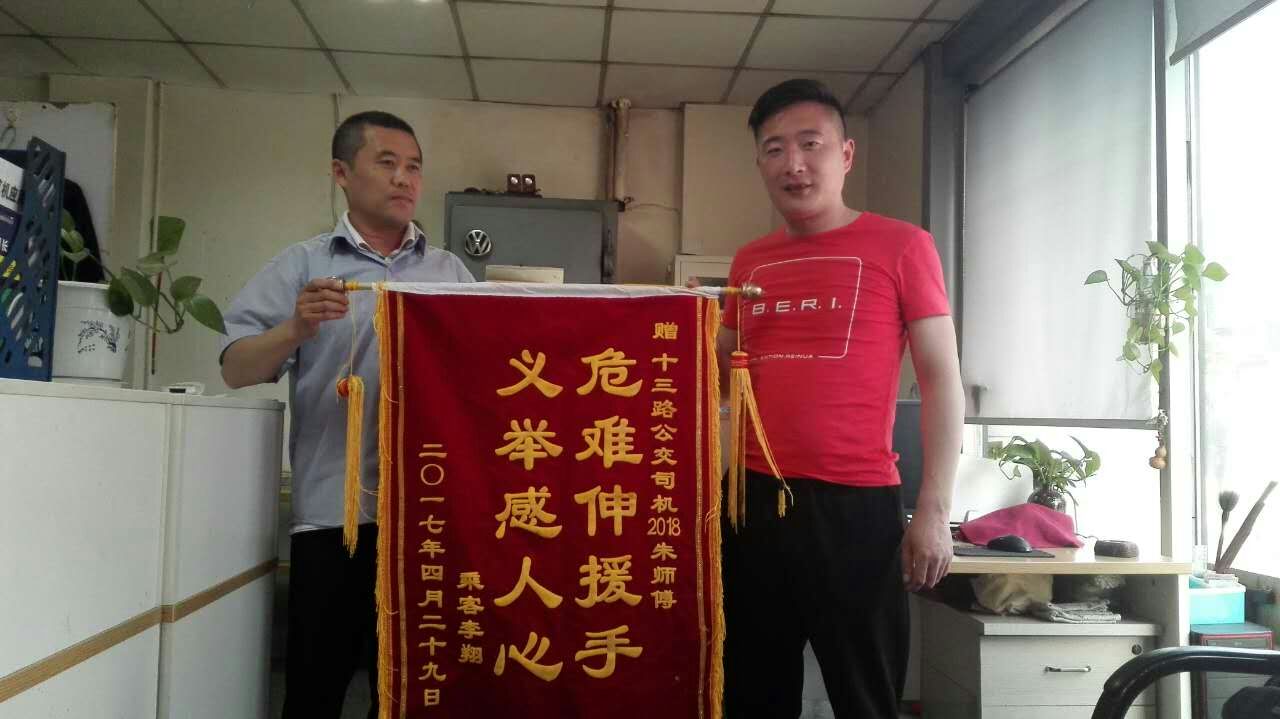 4月29日下午,13路調(diào)度室收到一面錦旗,表揚(yáng)13路駕駛員朱輝見義勇為的行為。原來,4月26日下午13點(diǎn)左右,李先生孩子誤食過敏食物,導(dǎo)致全身過敏,李先生以為孩子只是一般過敏,應(yīng)該沒什么大礙,便從唐溝乘坐13路車前往市二院,沒有乘坐出租車。當(dāng)車輛行駛一段時間后,李先生發(fā)現(xiàn)孩子臉色越來越差,這時,急壞了的李先生立即求助駕駛員,駕駛員朱輝了解情況后,看到孩子病情嚴(yán)重,不能耽誤,在征求車上乘客的意見后,直接將公交車開到市二院,公交車化身救護(hù)車,為孩子贏得了寶貴的救助時間。孩子家長十分感激,在孩子好轉(zhuǎn)后,親自前來感謝。