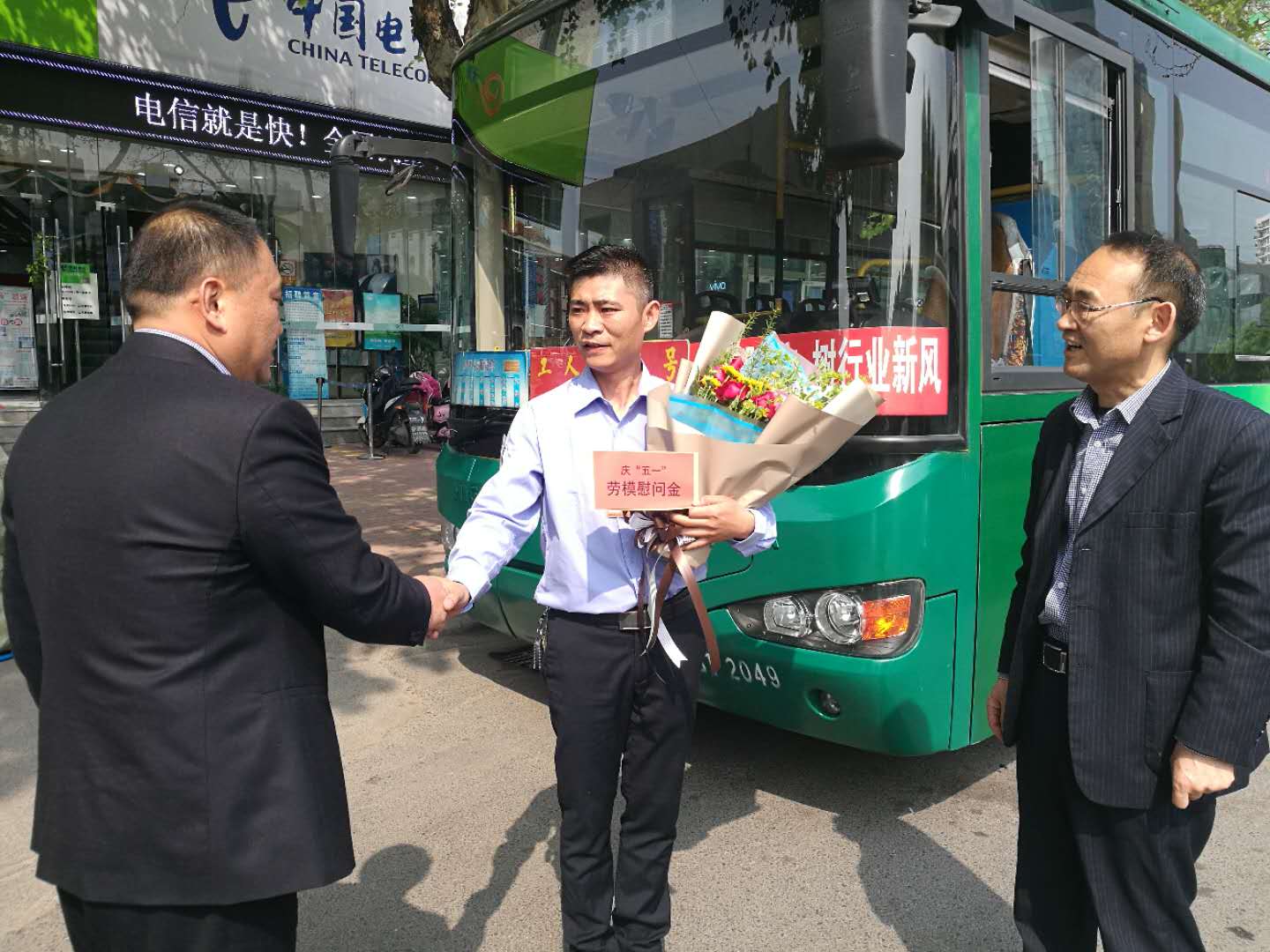 同時,蔣成彪和丁玉華帶隊分別看望慰問了10路楊鵬鵬、專1線邢運民、11路曹瑞國、19路閆翔、612路王超等5名省、市五一勞動獎章先進駕駛員。